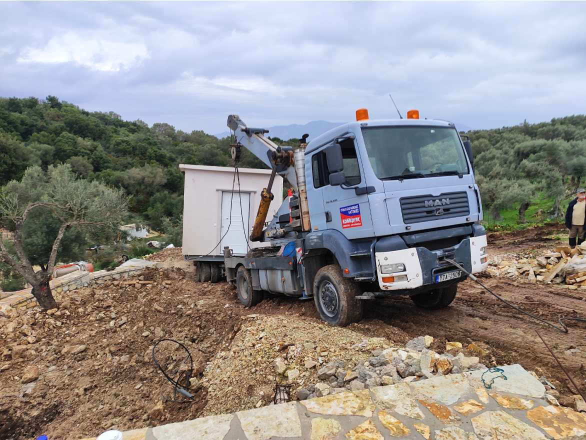 Η εταιρεία μας με το εξειδικευμένο προσωπικό και τα αντίστοιχα μηχανήματα που διαθέτει πραγματοποίησε με απόλυτη επιτυχία την μεταφορά και τοποθέτηση των κυψελών παρά τον βαθμό δυσκολίας λόγω της στενότητας της εισόδου και της κλίσης του οικοπέδου.